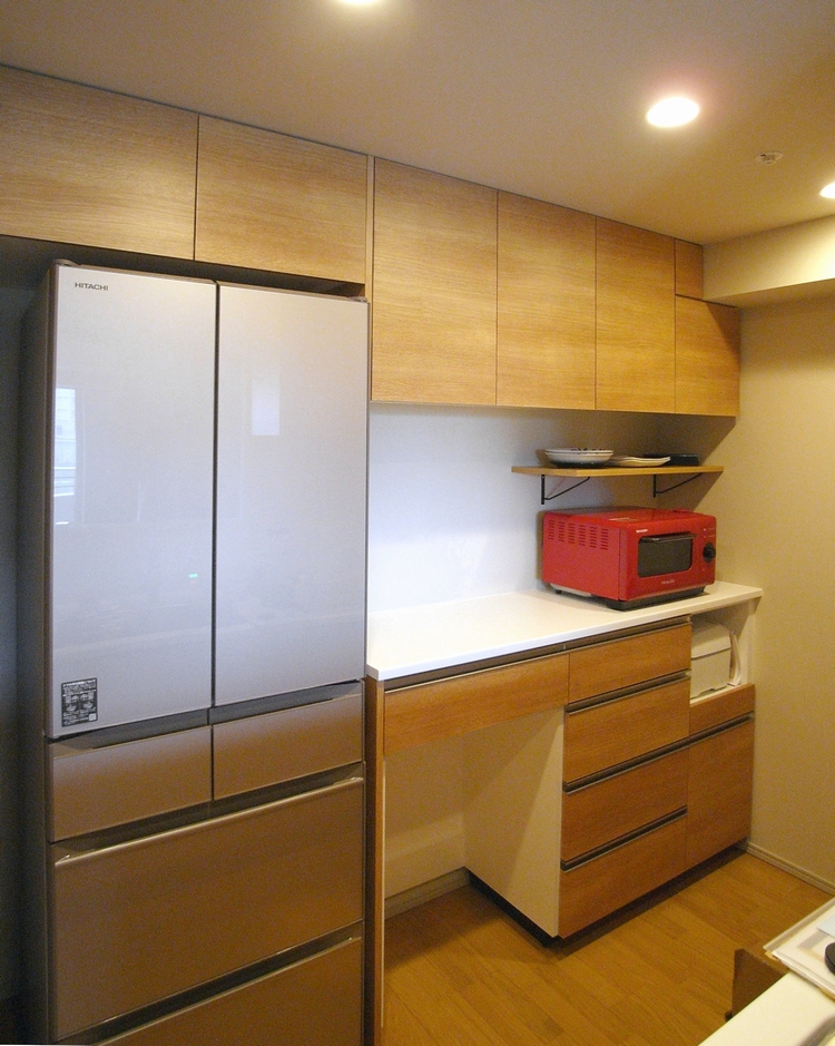 | 施工年・価格 | 2022年/参考:食器棚+冷蔵庫上収納:税込58万円(当時とは価格が変わるためお問合せください) |