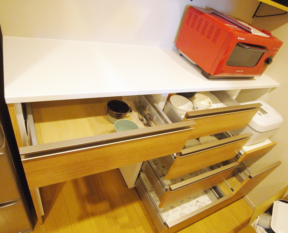 オーダーだからこそ、ゴミ箱のサイズや家電の配置に合わせた細やかな調整が可能です。