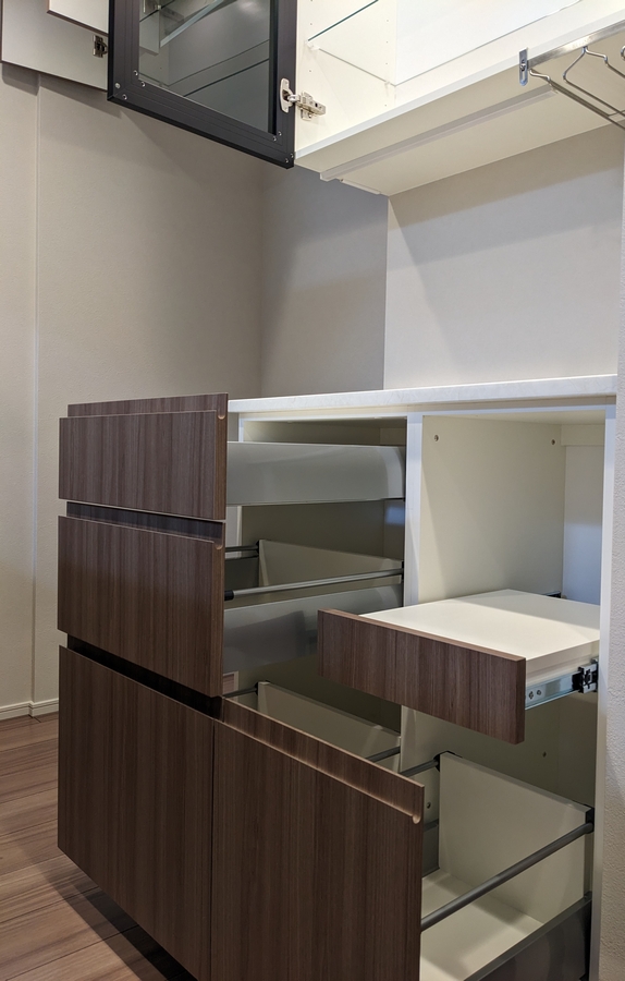 2024年 / 参考価格:食器棚+冷蔵庫上収納 税込47万円 (※当時の価格のため、現在とは異なる場合があります。お手数ですが最新価格はお問い合わせください) ※照明および器具の取付費用は含まれておりません。 |