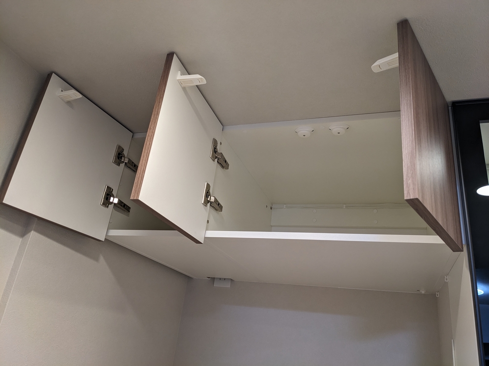 | 収納サイズ | 食器棚:幅87cm、吊戸棚高さ80cm,吊戸棚奥行37cm、天板奥行45cm、カウンター高さ90cm、天井高さ220cm、 冷蔵庫上収納:幅93cm奥行62cm高さ35cm |