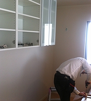 戸建て住宅の食器棚取付風景です。サイズ長さ180cm×奥行60、セパレート型。 マンションのケースですと、材料の搬入の工程部分が戸建住宅よりも余分に時間を要します。
